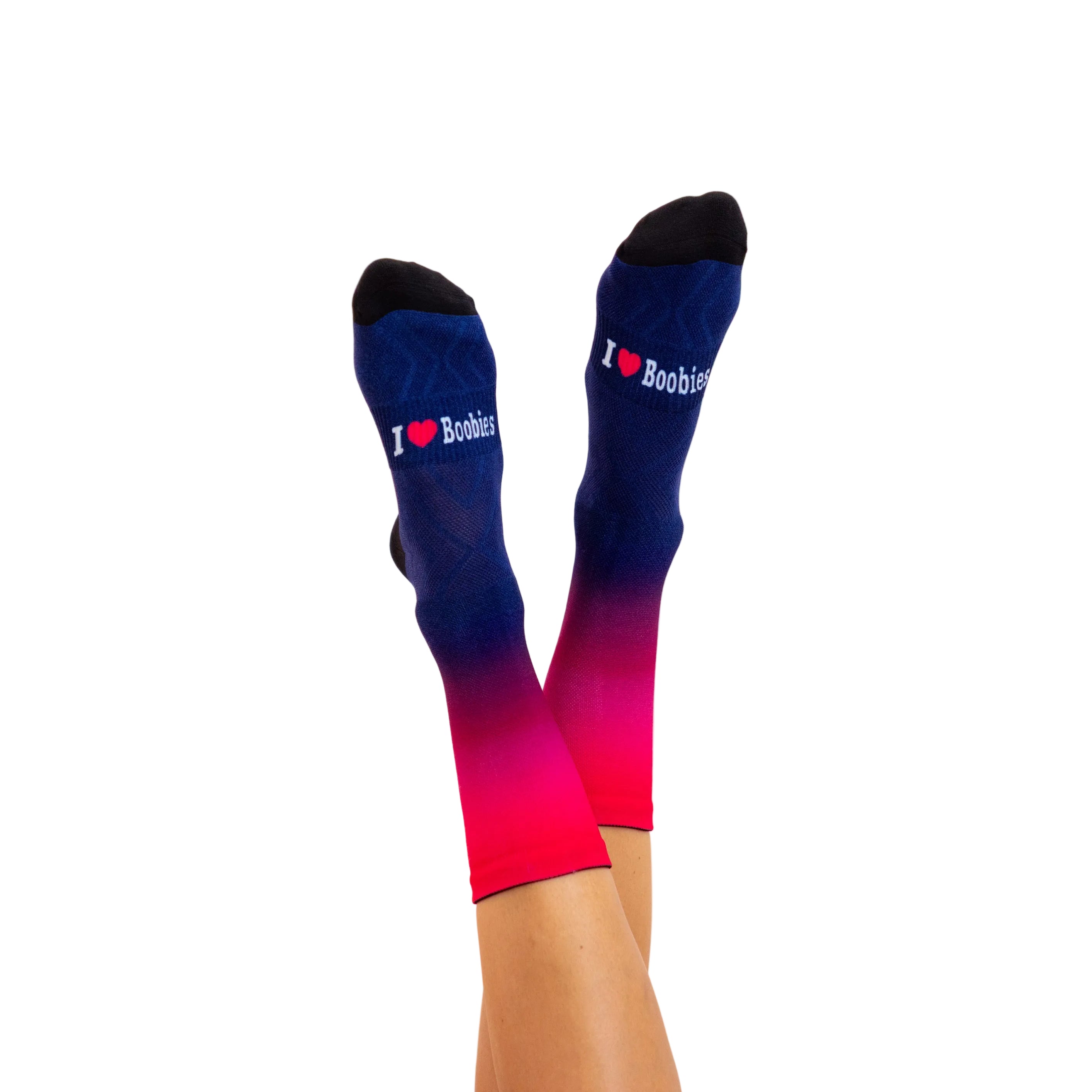 The length of a sock may be up for debate in the running and cycling world but there are no rules when it comes to the design. I Love Boobies Designer Socks are created to brighten up your kit ensemble, with a selection of colours and patterns to choose from. Made with a nylon blend, the socks are lightweight, breathable and moisture wicking with a reinforced heel cup and toe box for added durability. 5 Pairs of socks equals to 1 breast cancer screening.