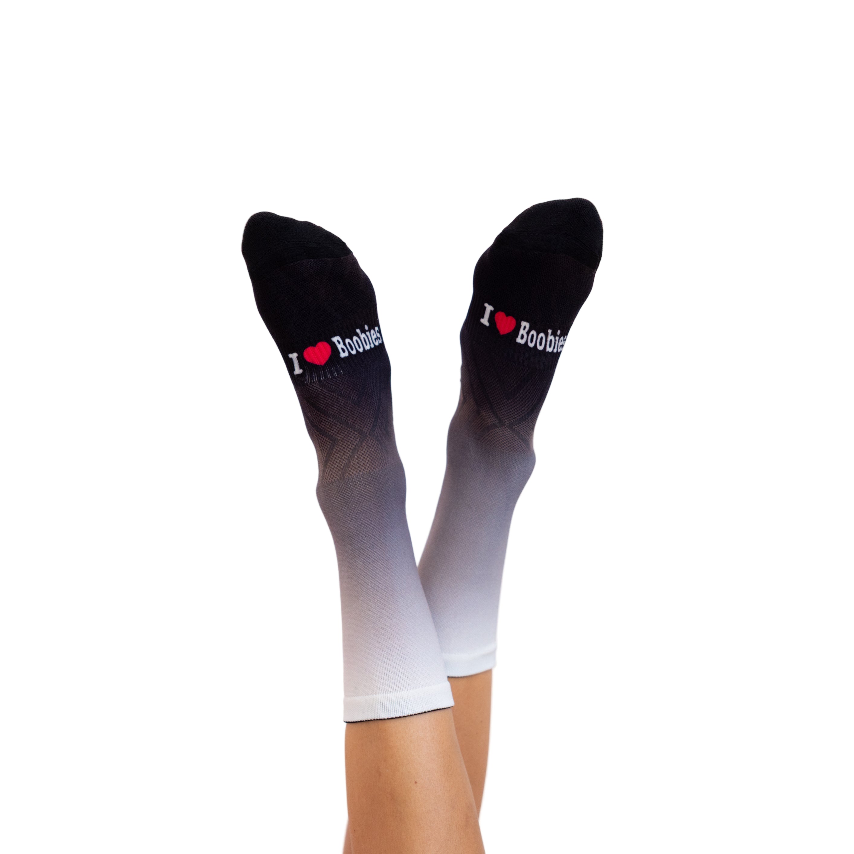 The length of a sock may be up for debate in the running and cycling world but there are no rules when it comes to the design. Our I Love Boobies Designer Socks are created to brighten up your kit ensemble, with a selection of colours and patterns to choose from. Made with a nylon blend, the socks are lightweight, breathable and moisture wicking with a reinforced heel cup and toe box for added durability. 5 Pairs of socks equals to 1 breast cancer screening.